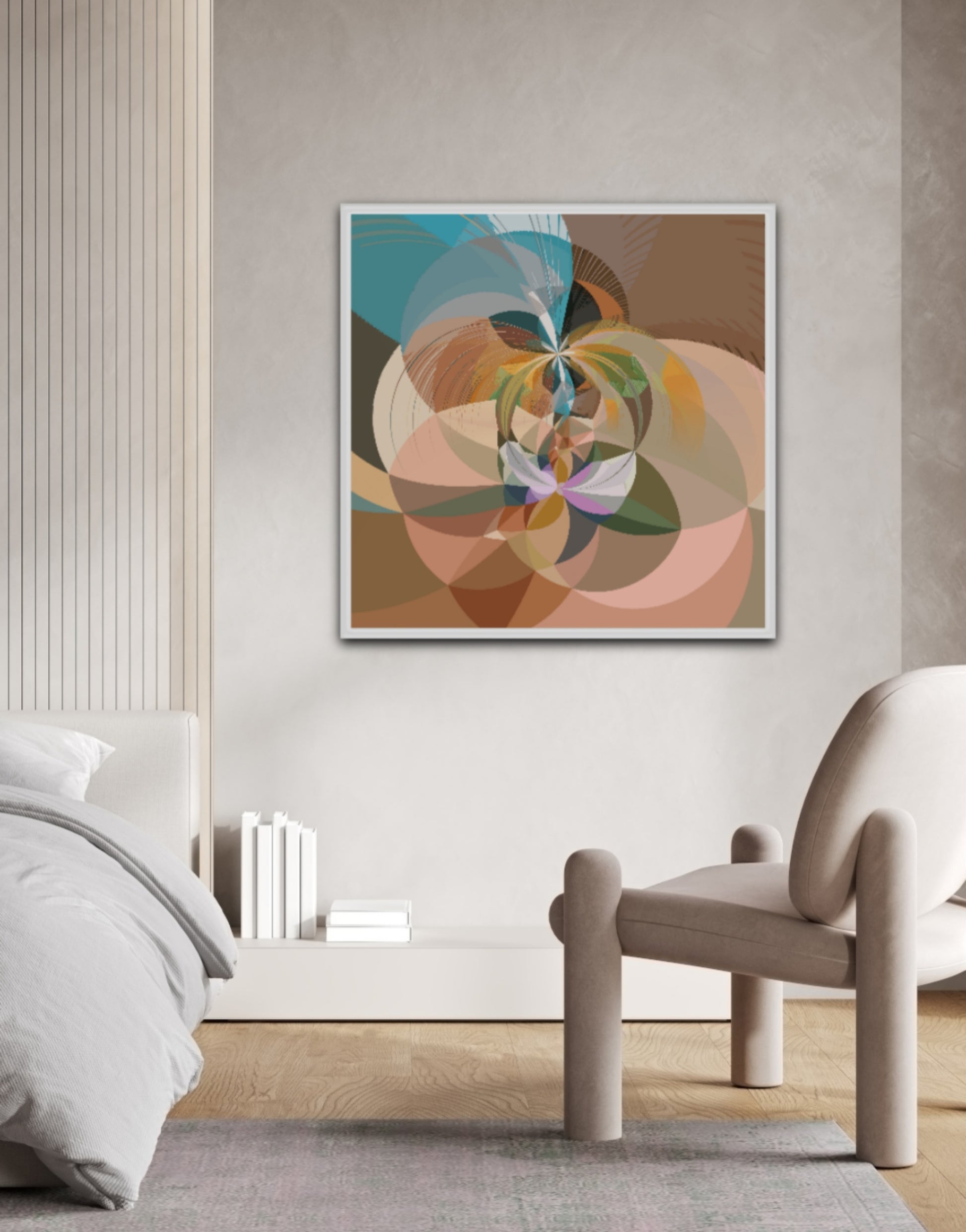 My graphic works are based on my photographic close-ups of my art and I create a unique design.