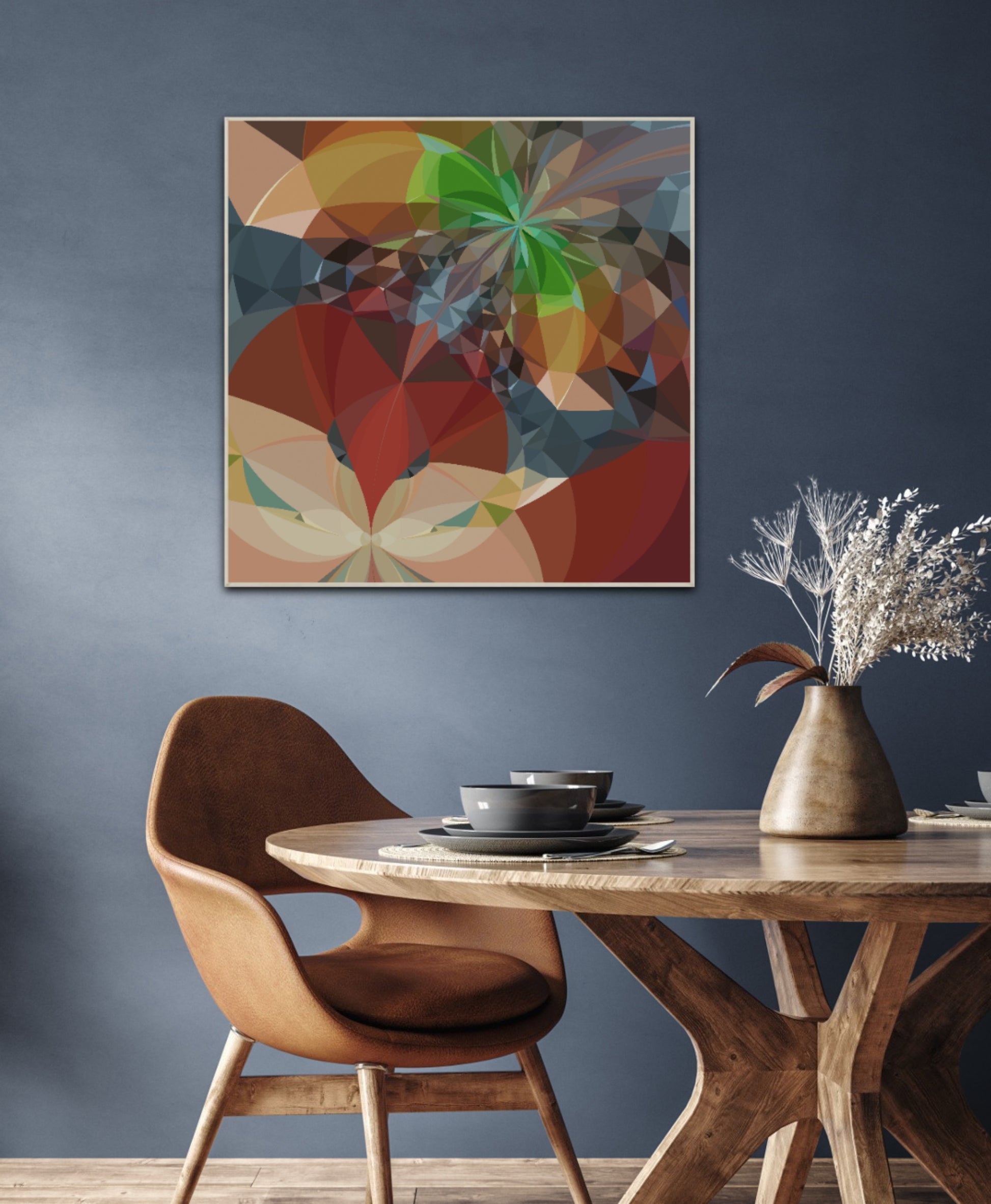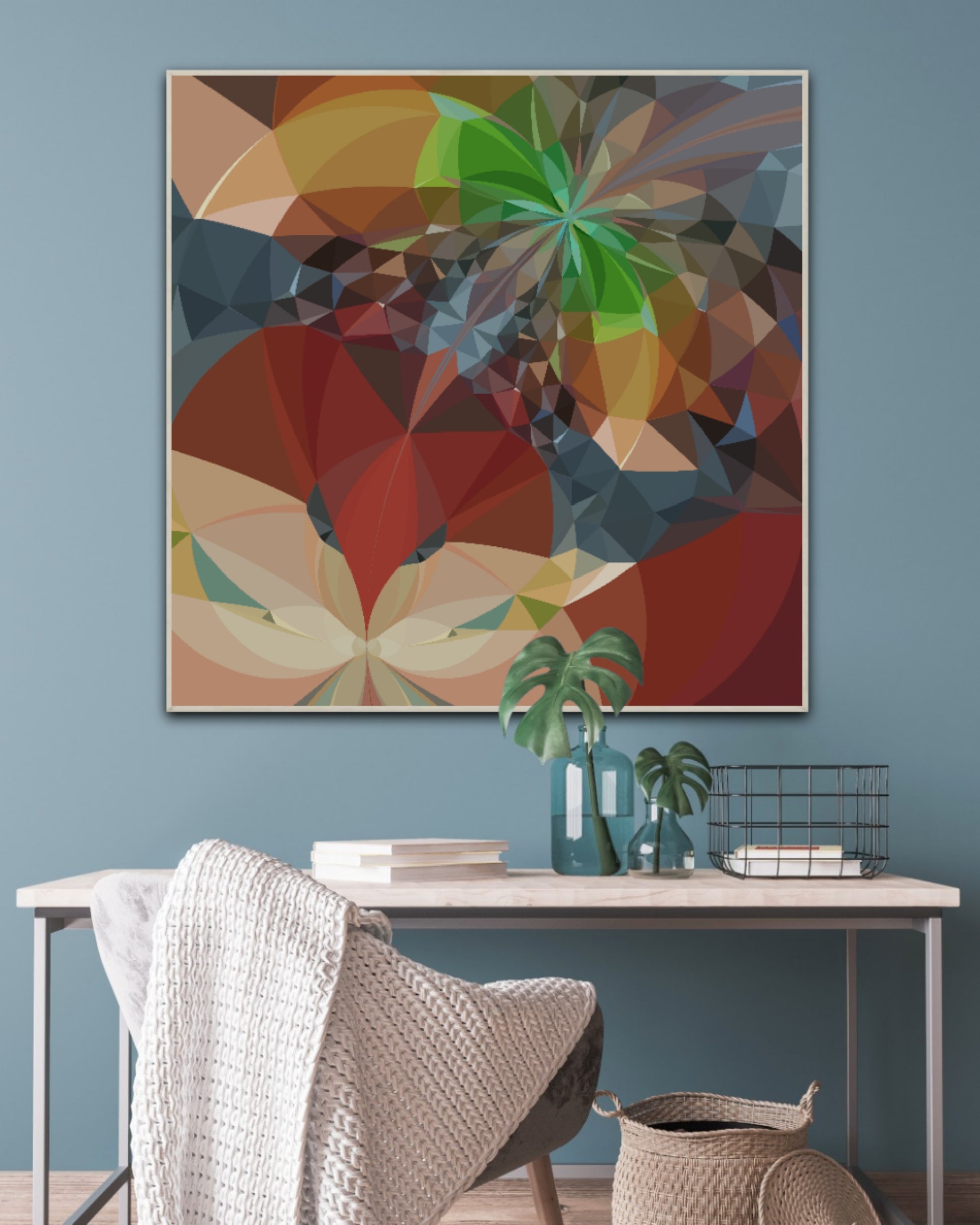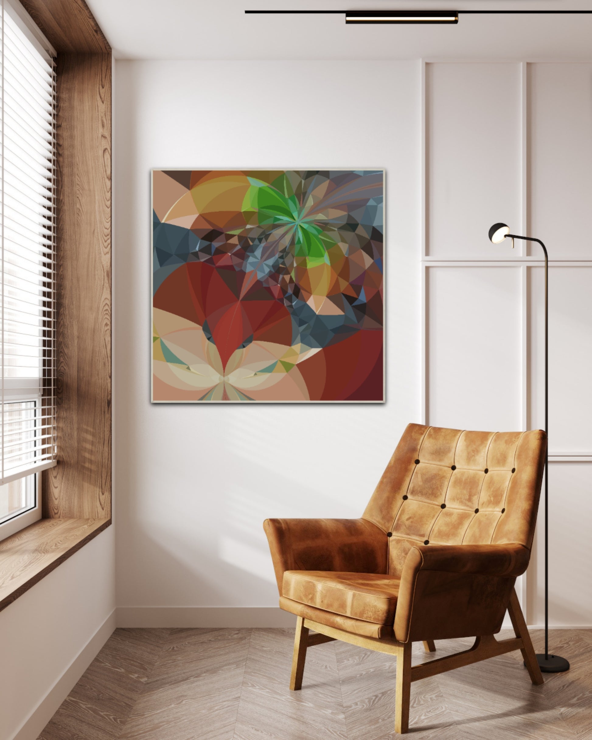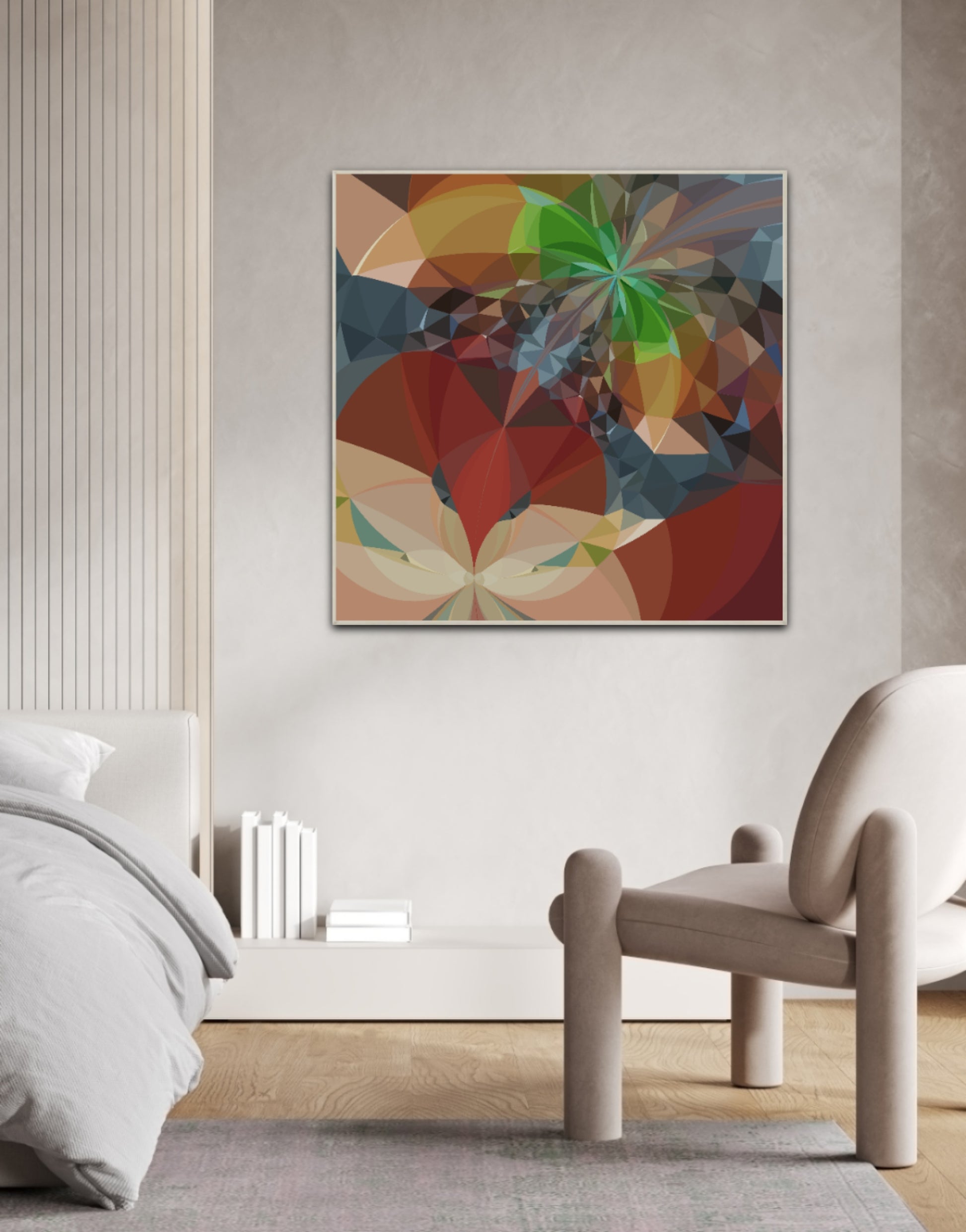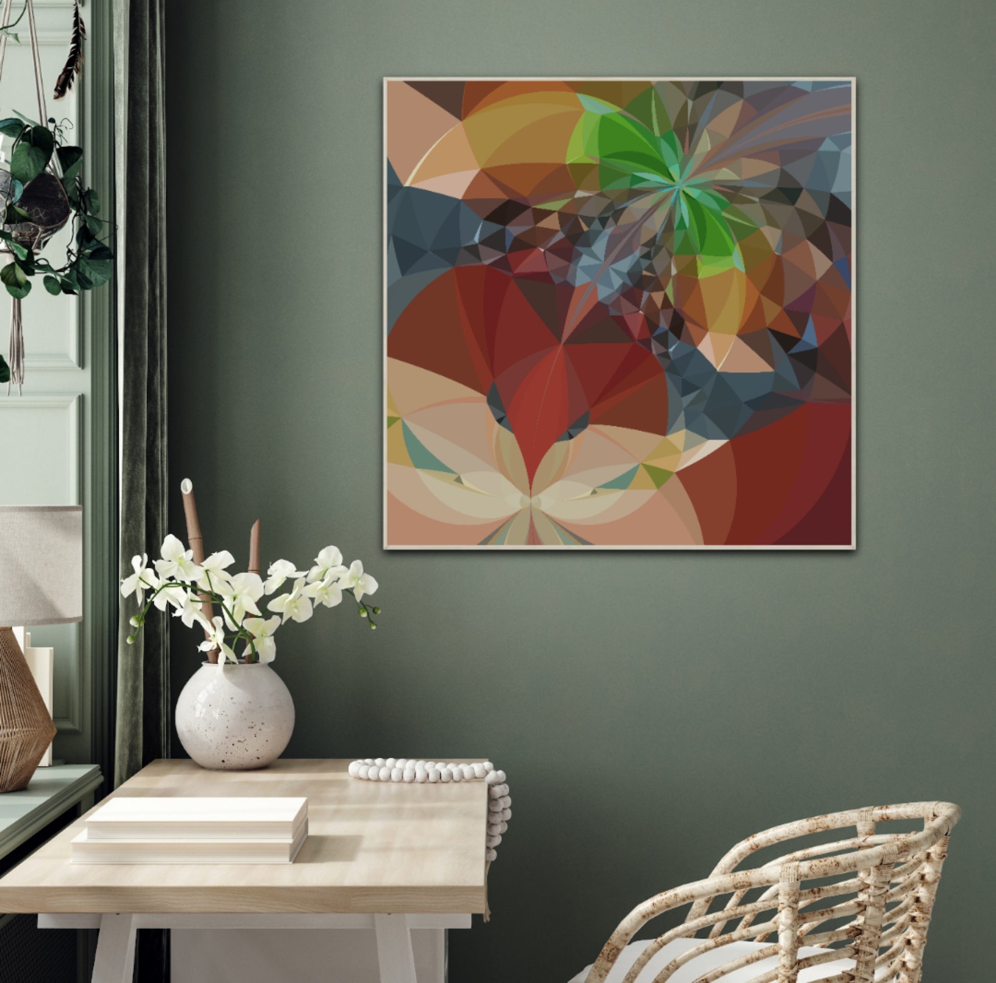 My graphic works are based on my photographic close-ups of my art and I create a unique design.
