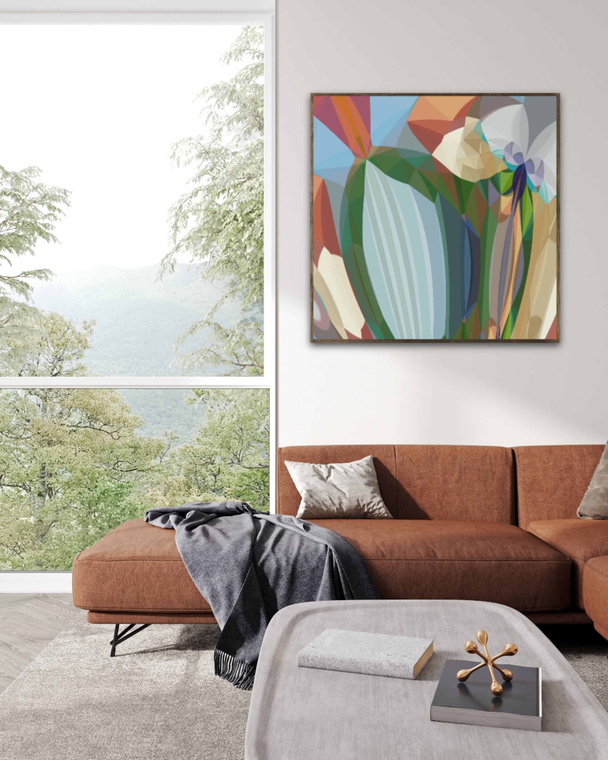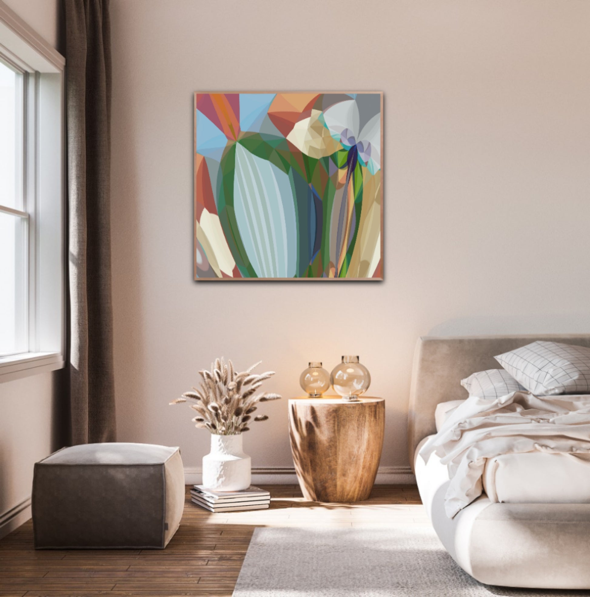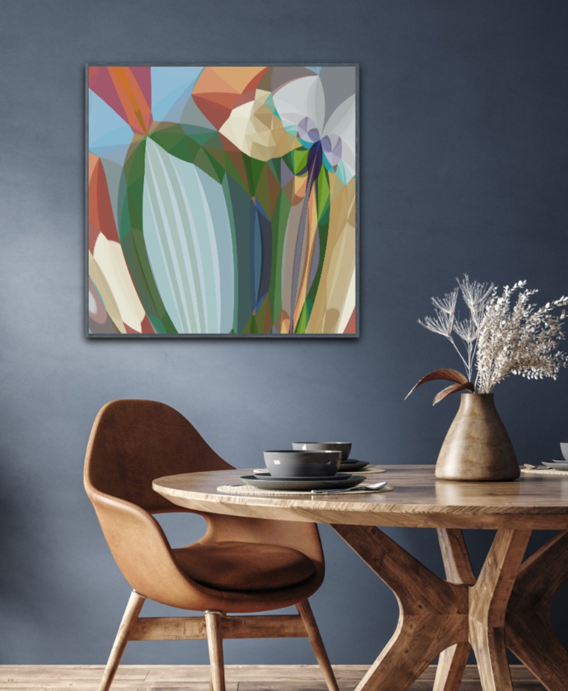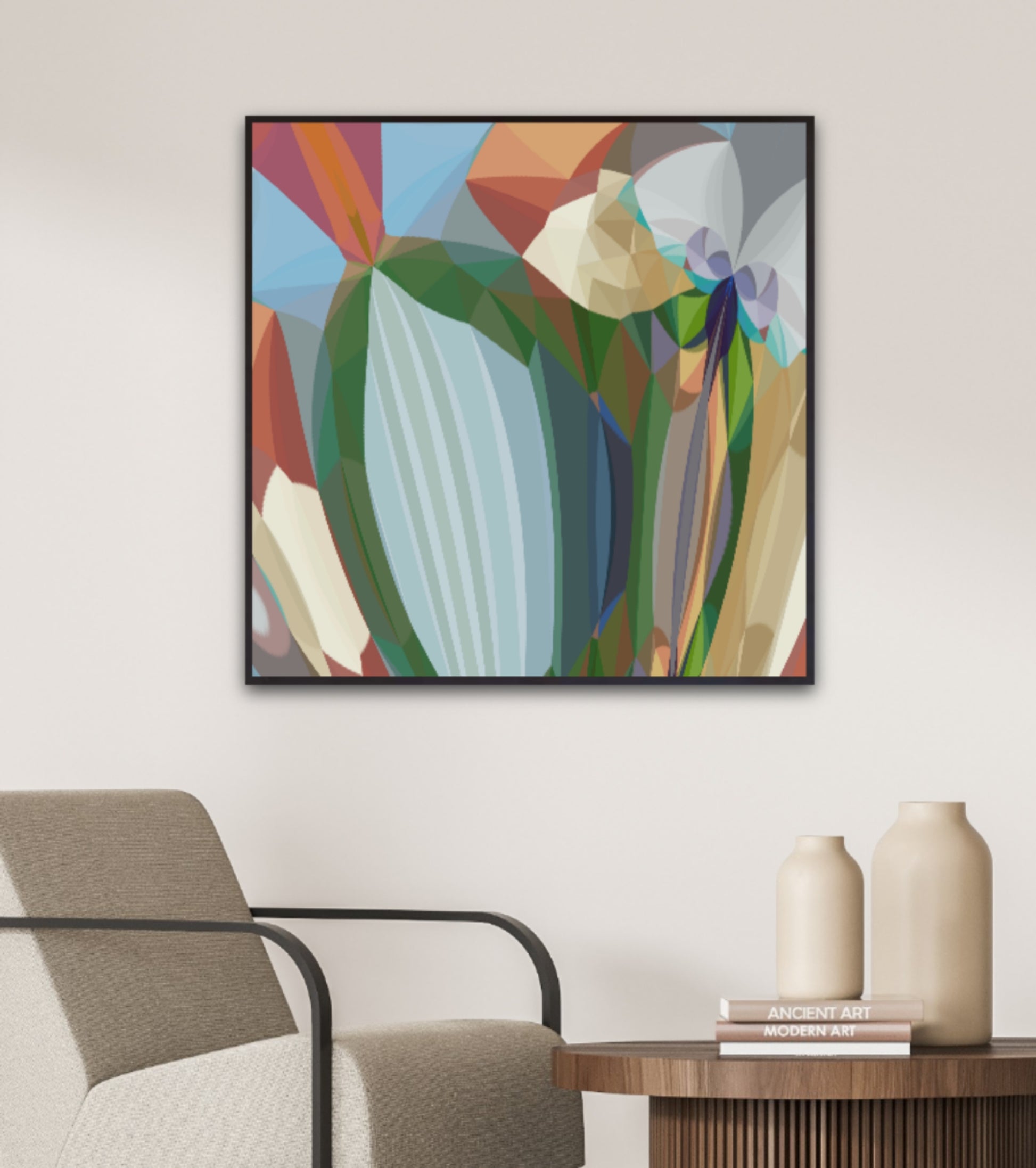 My graphic works are based on my photographic close-ups of my art and I create a unique design.