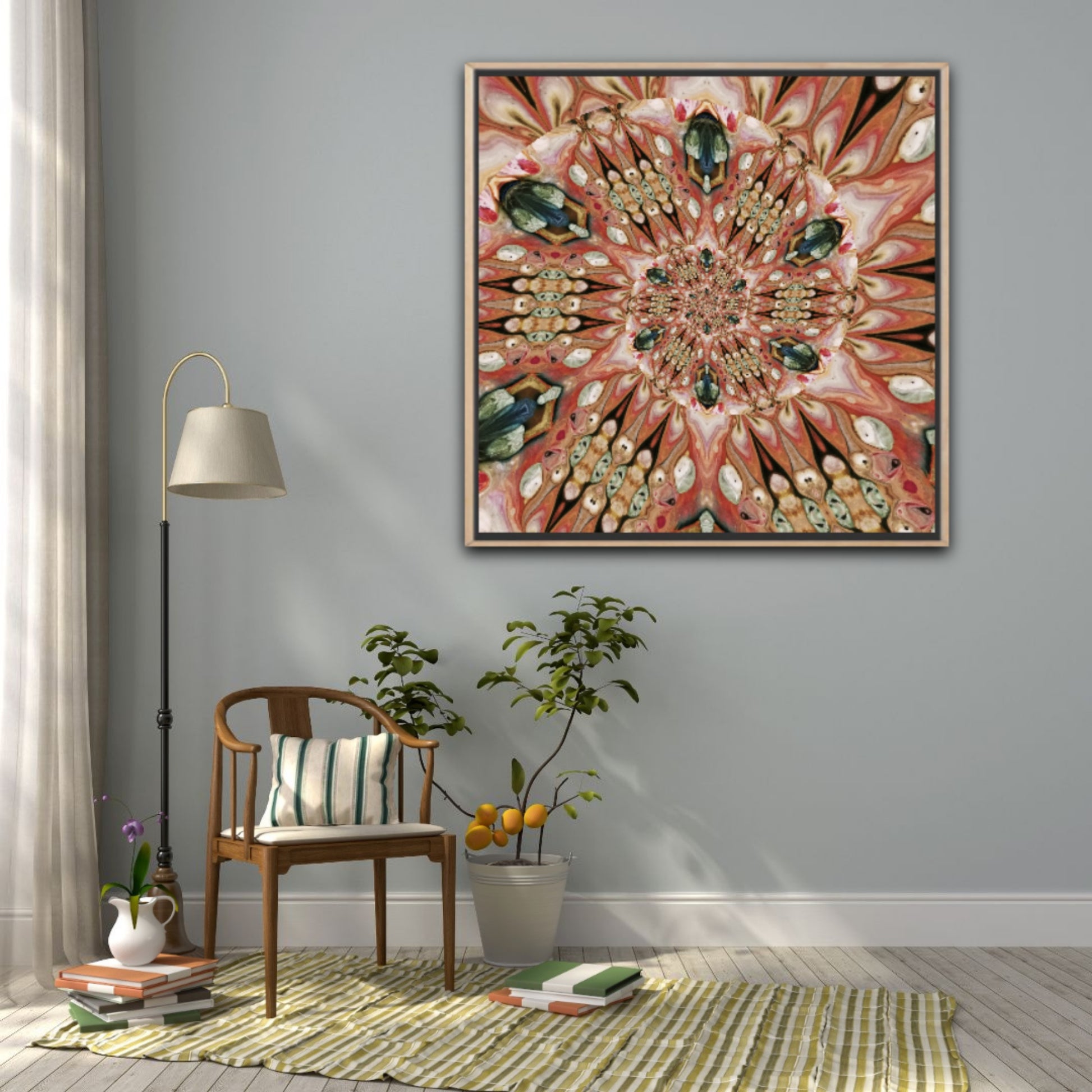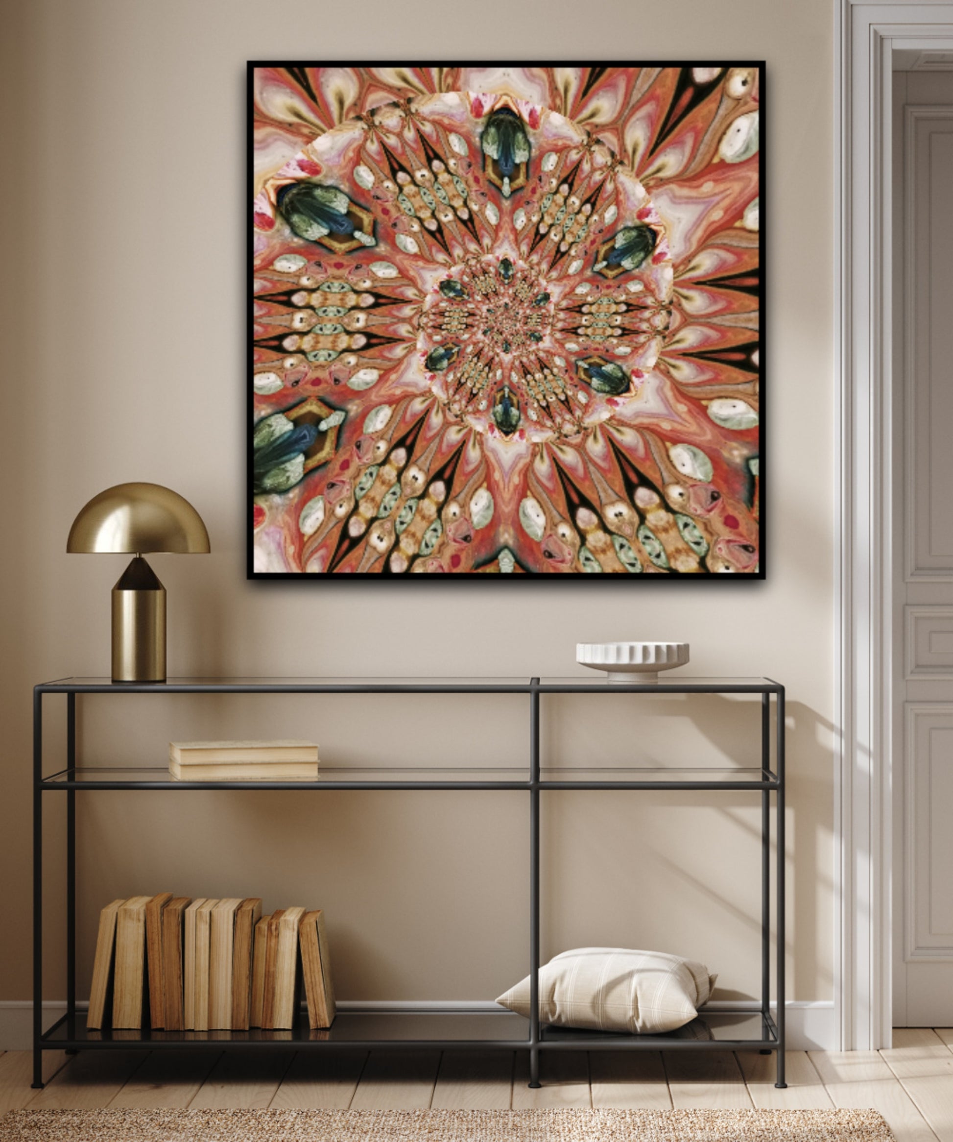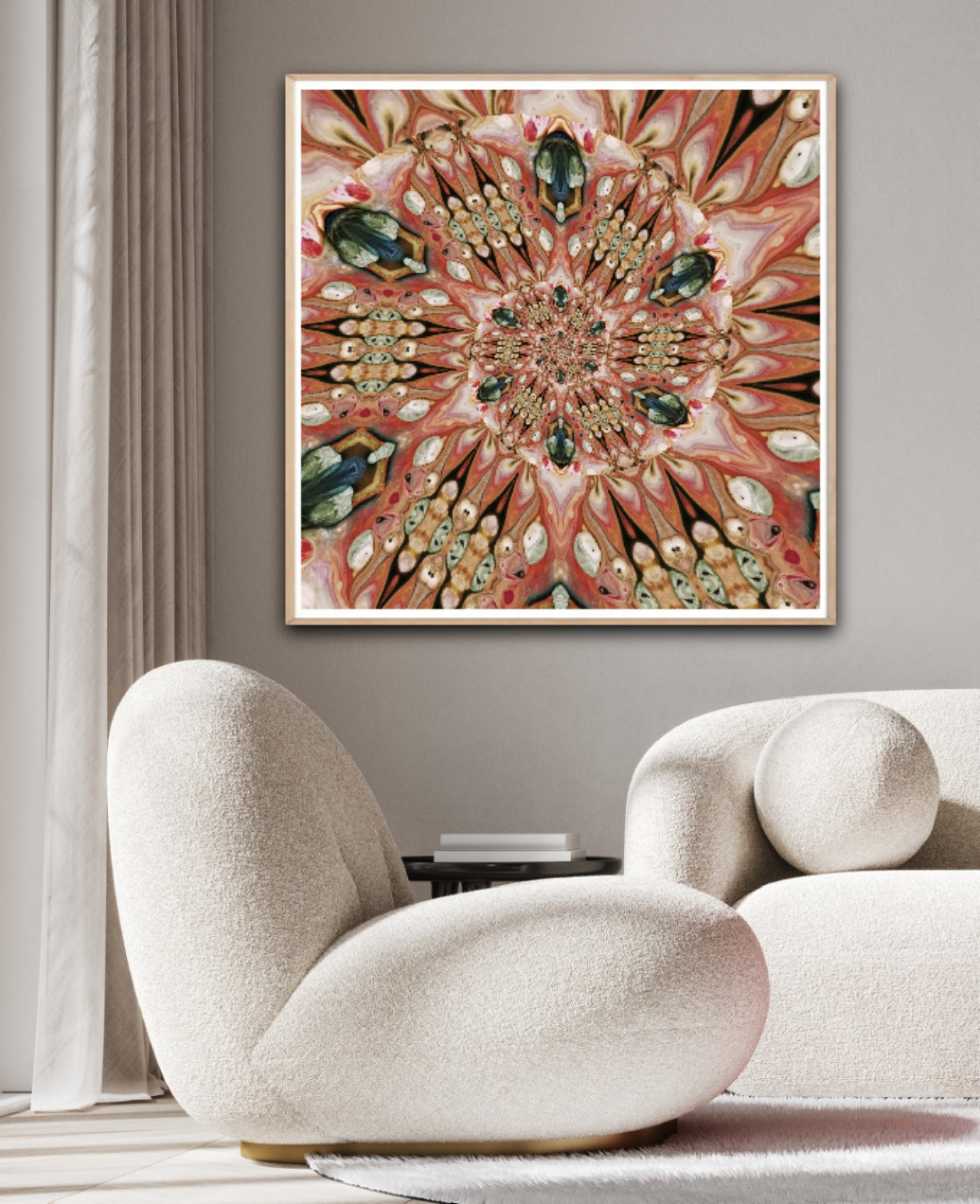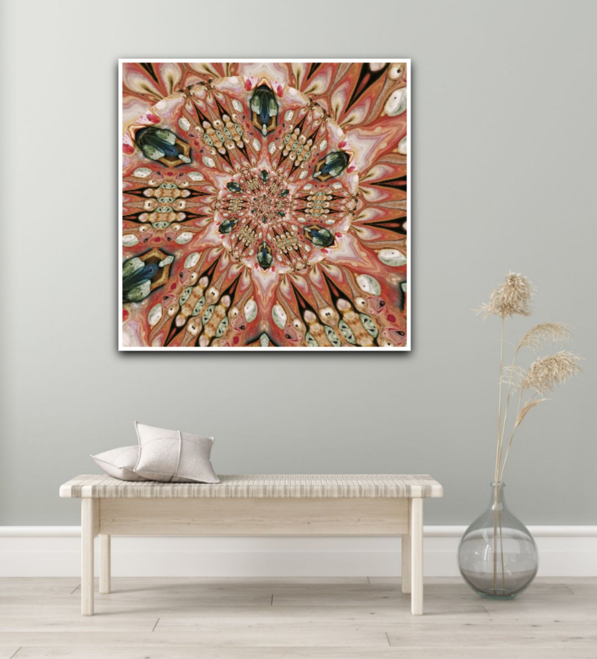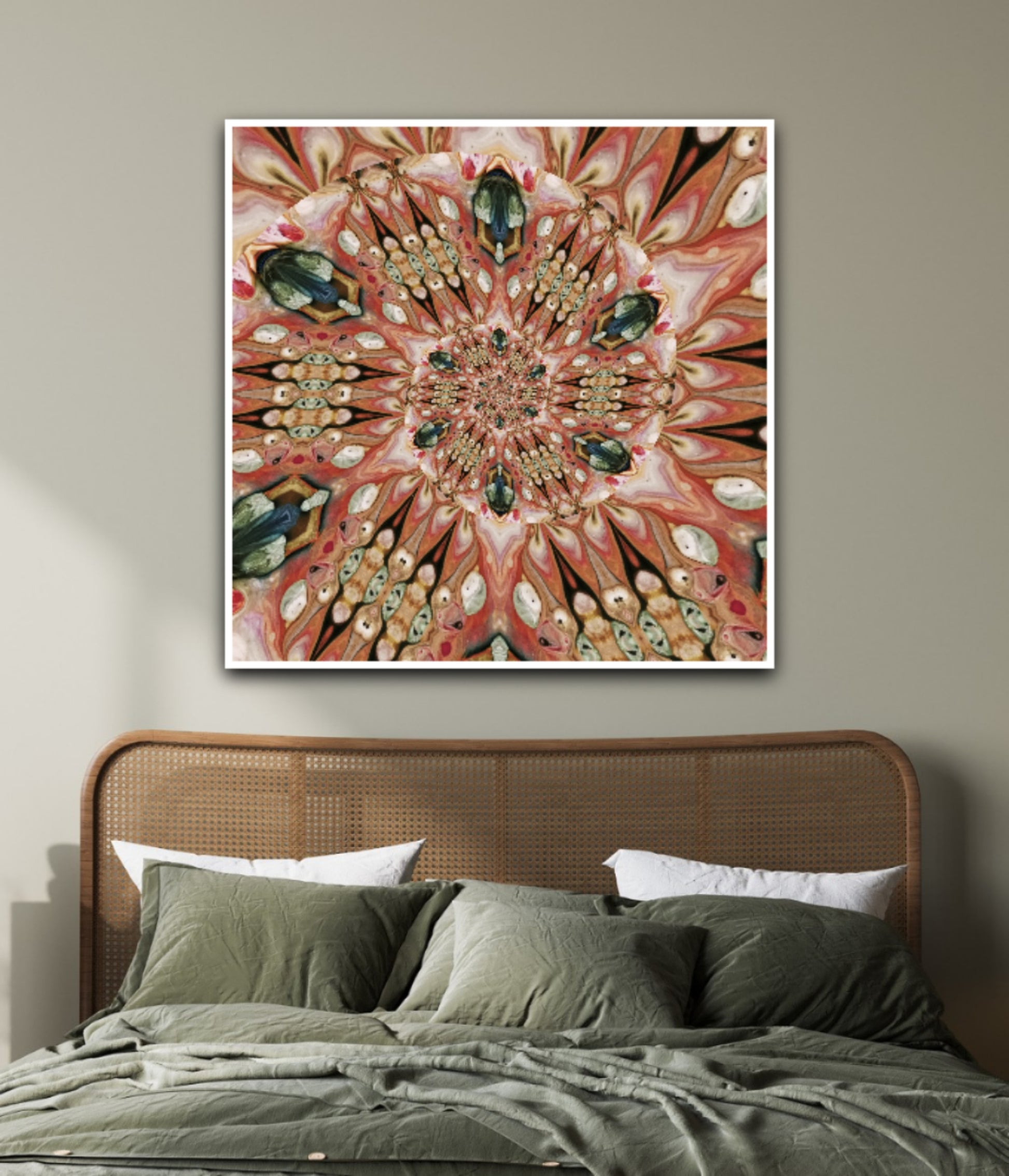 My graphic works are based on my photographic close-ups of my art and I create a unique design.
