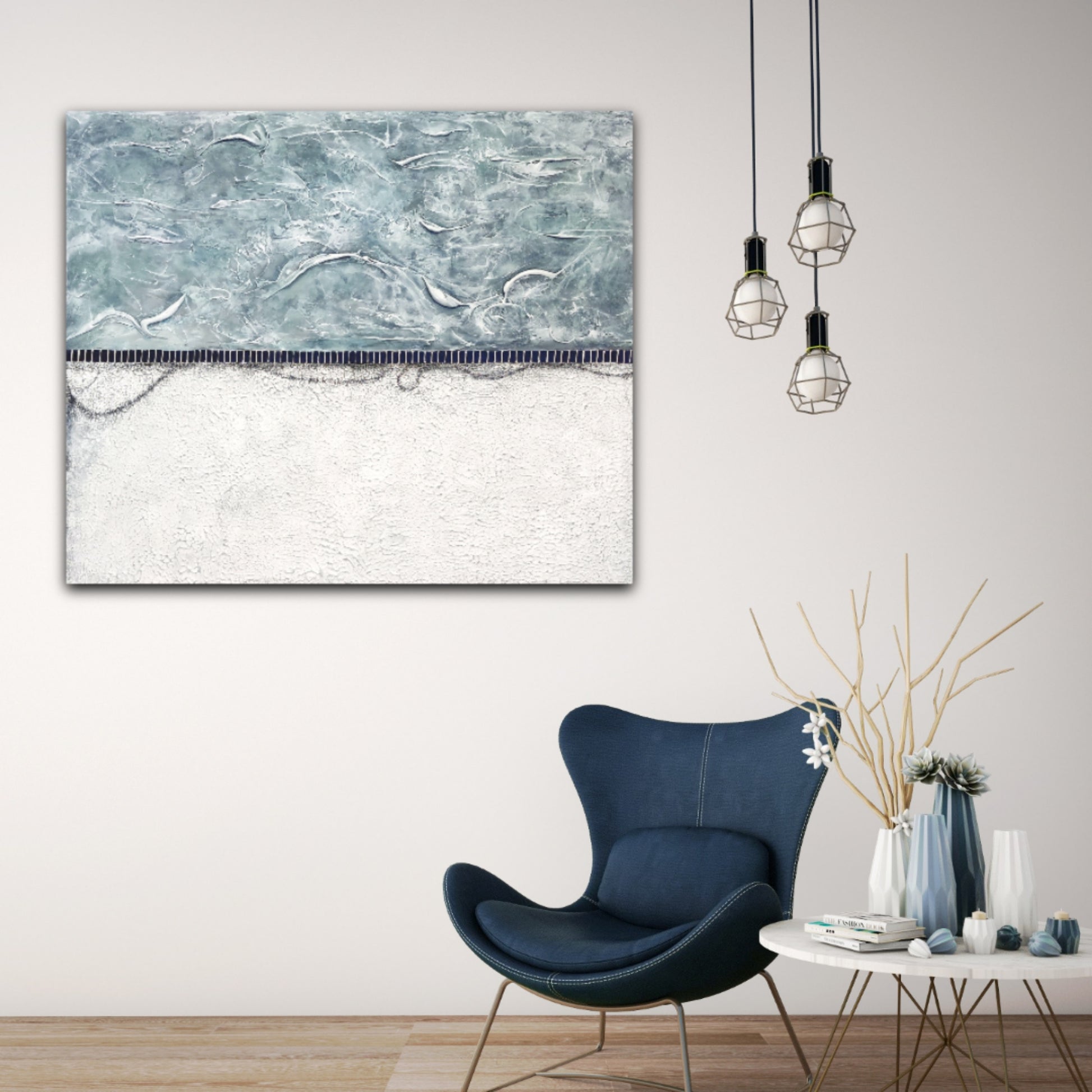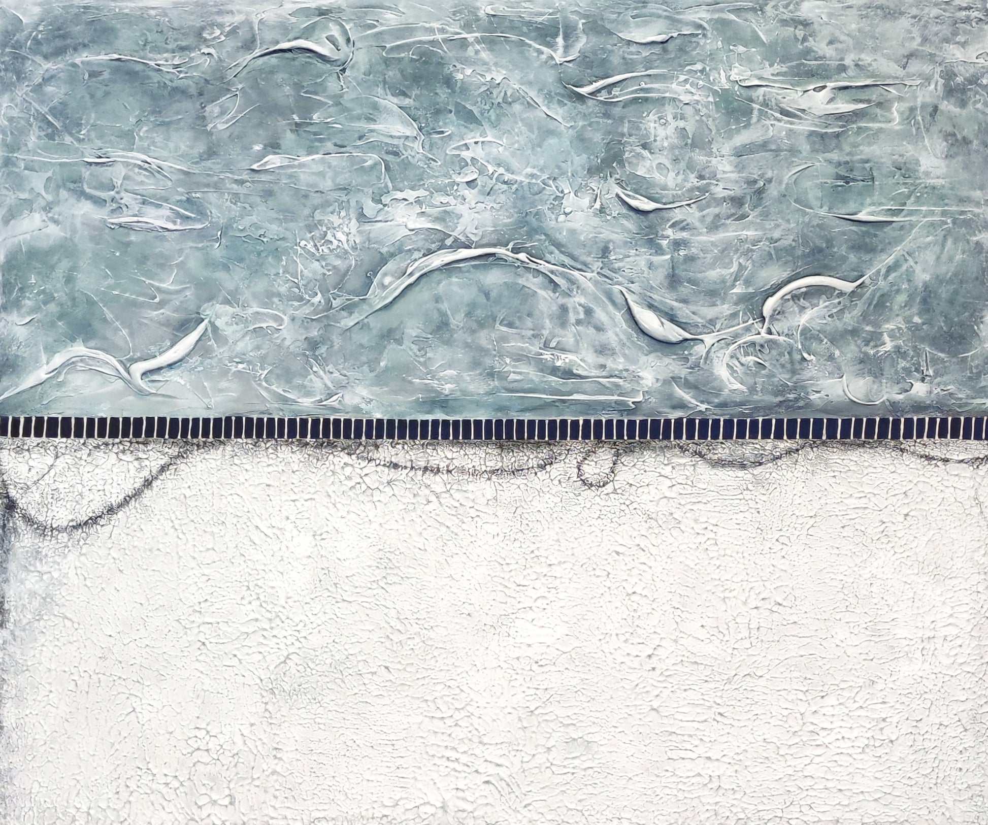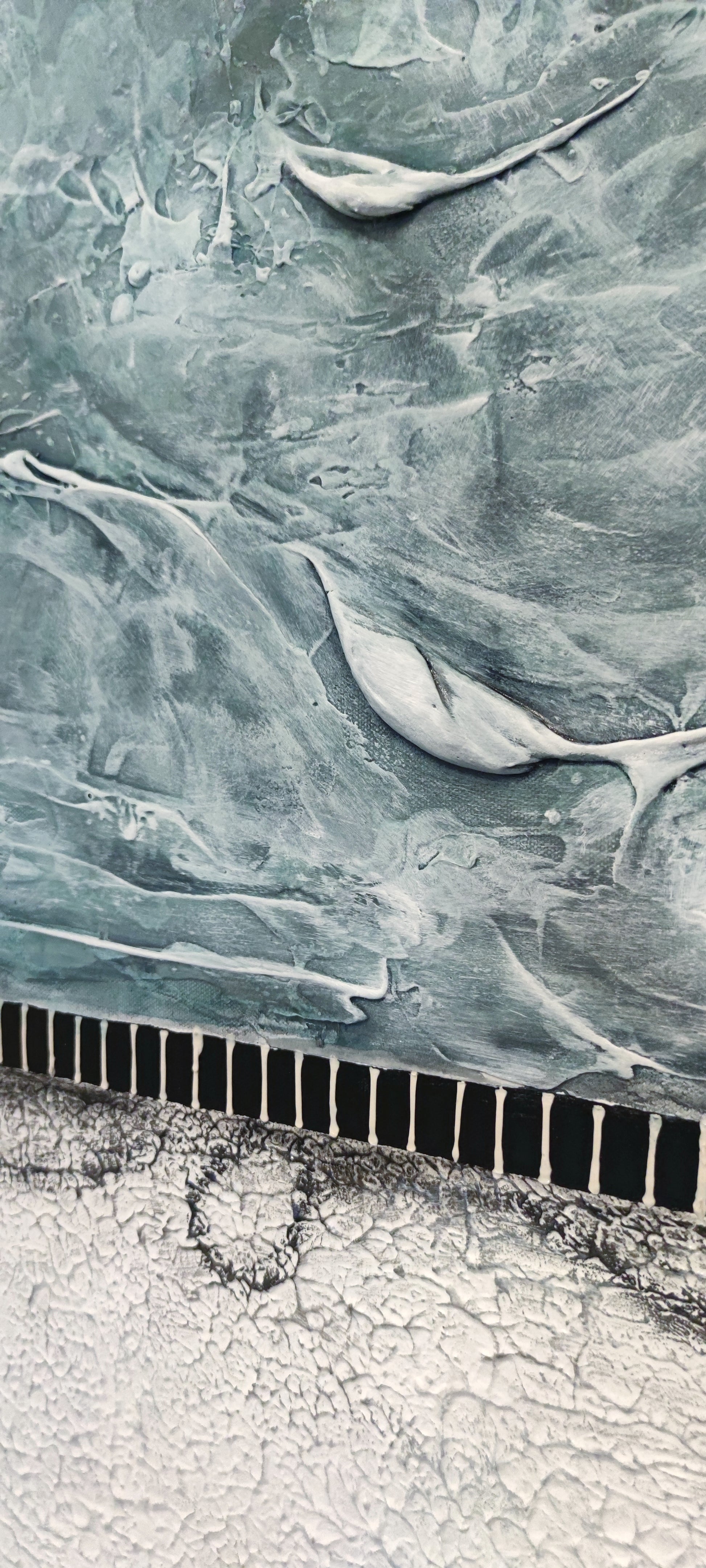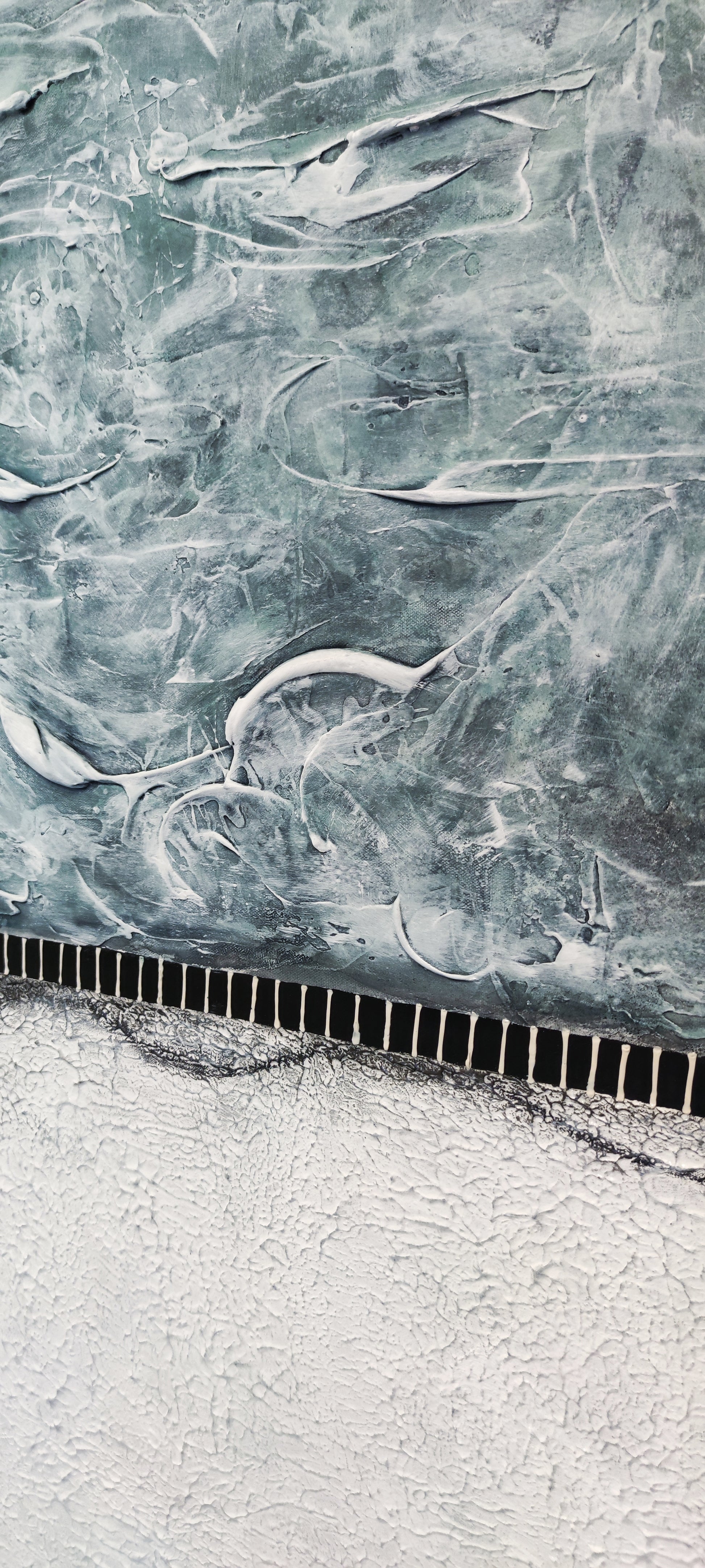 White/Grey/turquoise tones in textures over a more rustic white bottom