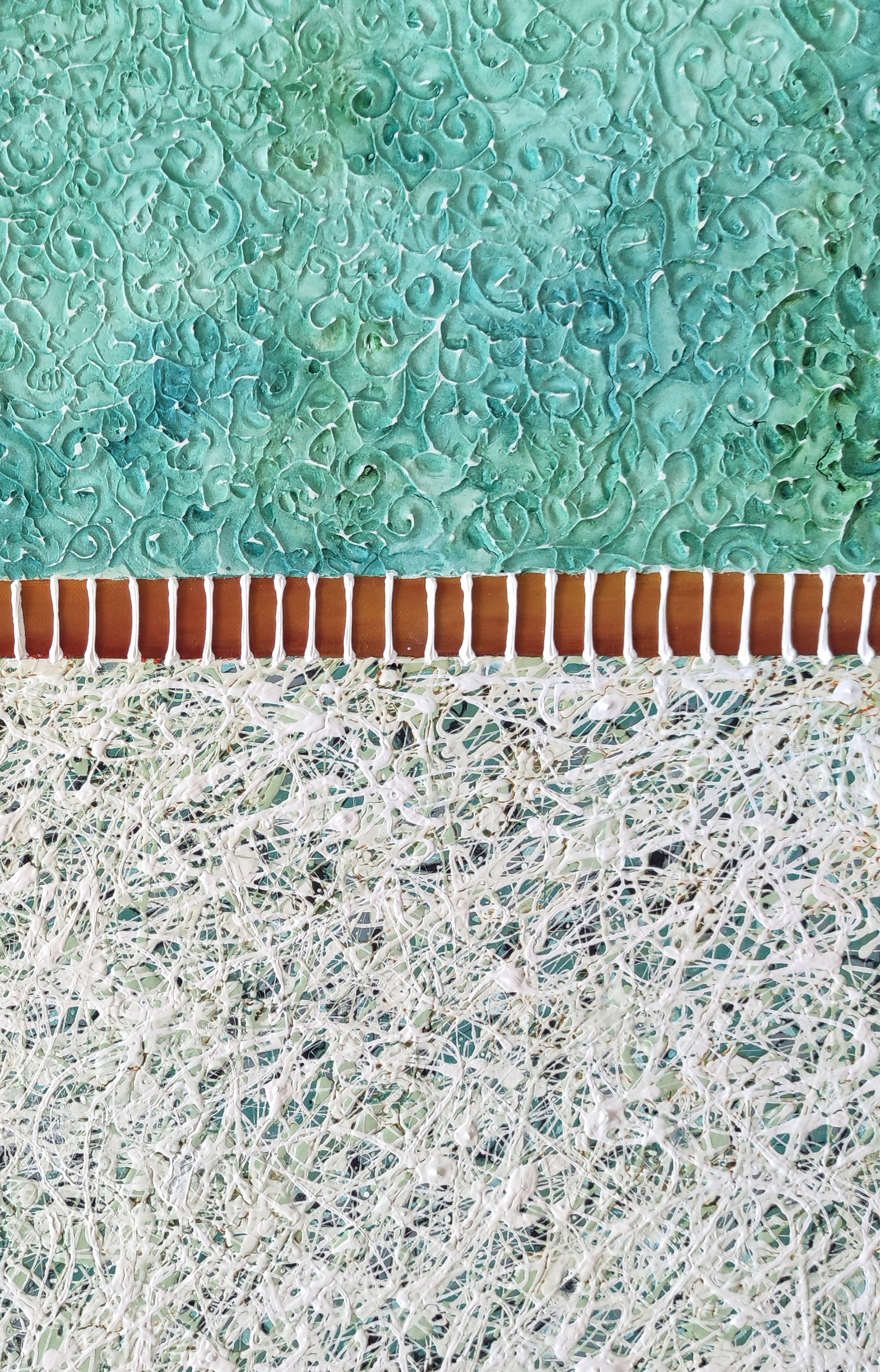 beautiful structures in blue-green patterns and many different layers of color on the lower part