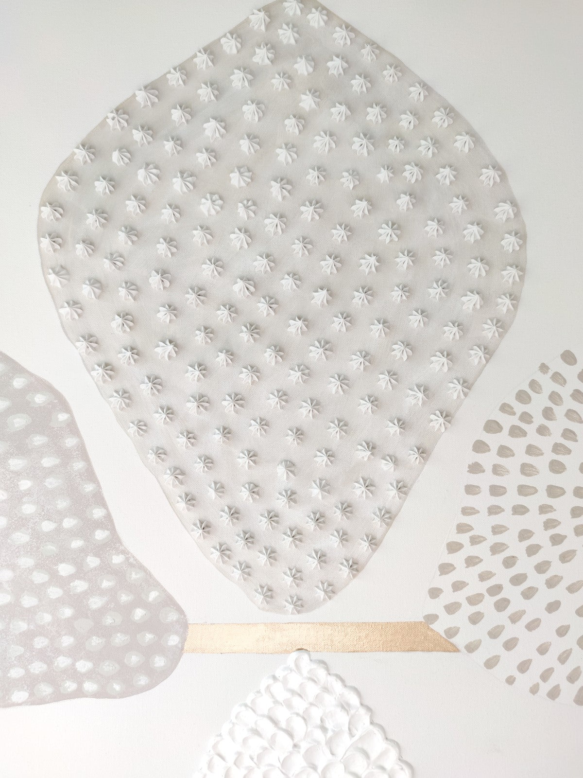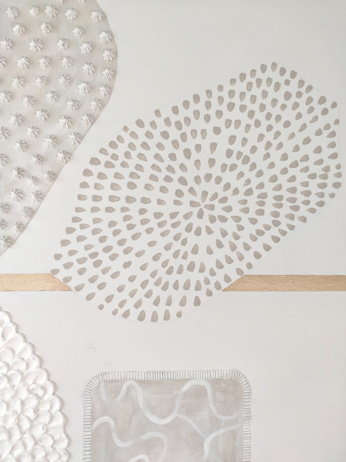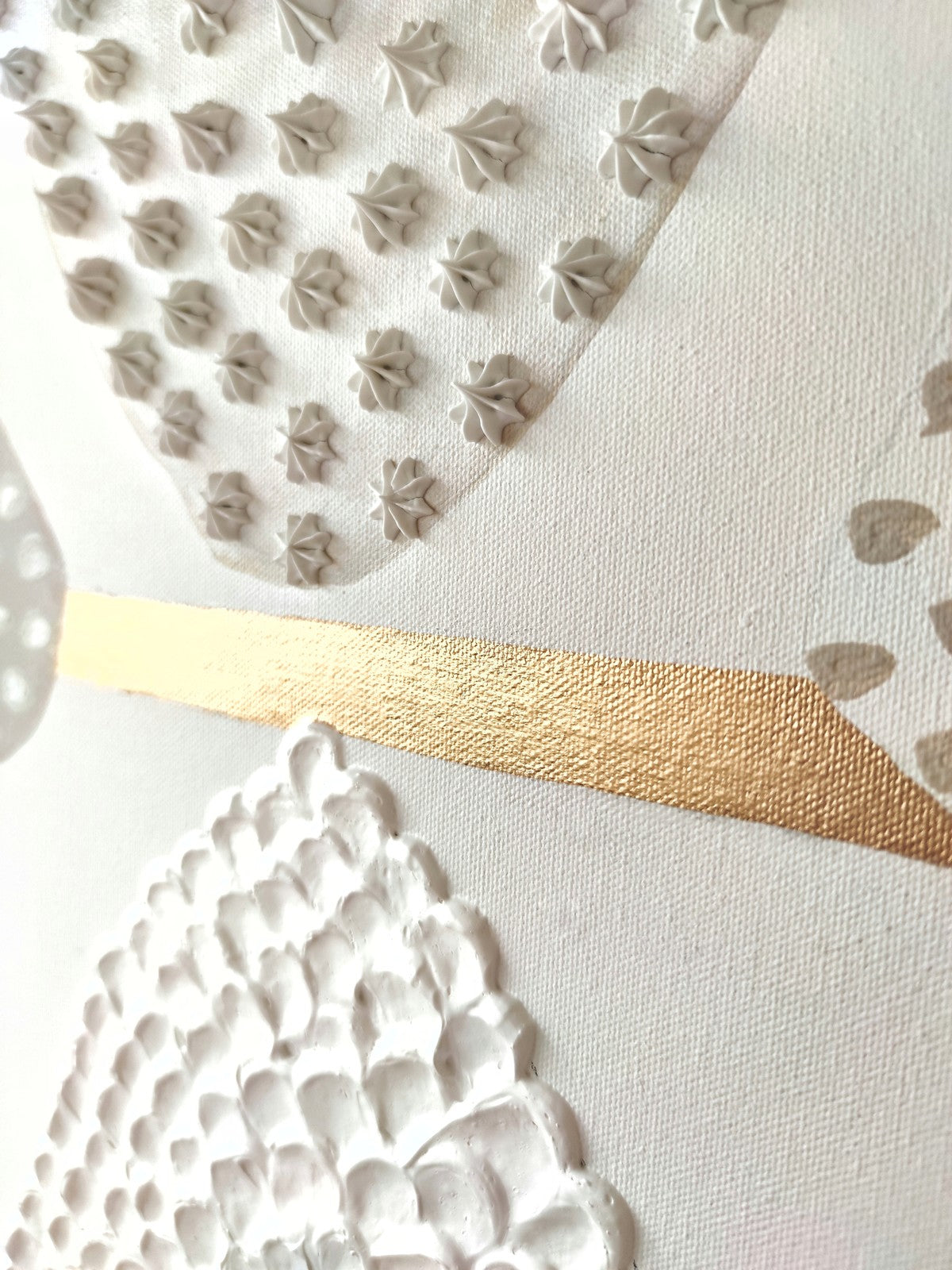 Jag leker mig fram i olika mönster, strukturer och medium och guldfärg