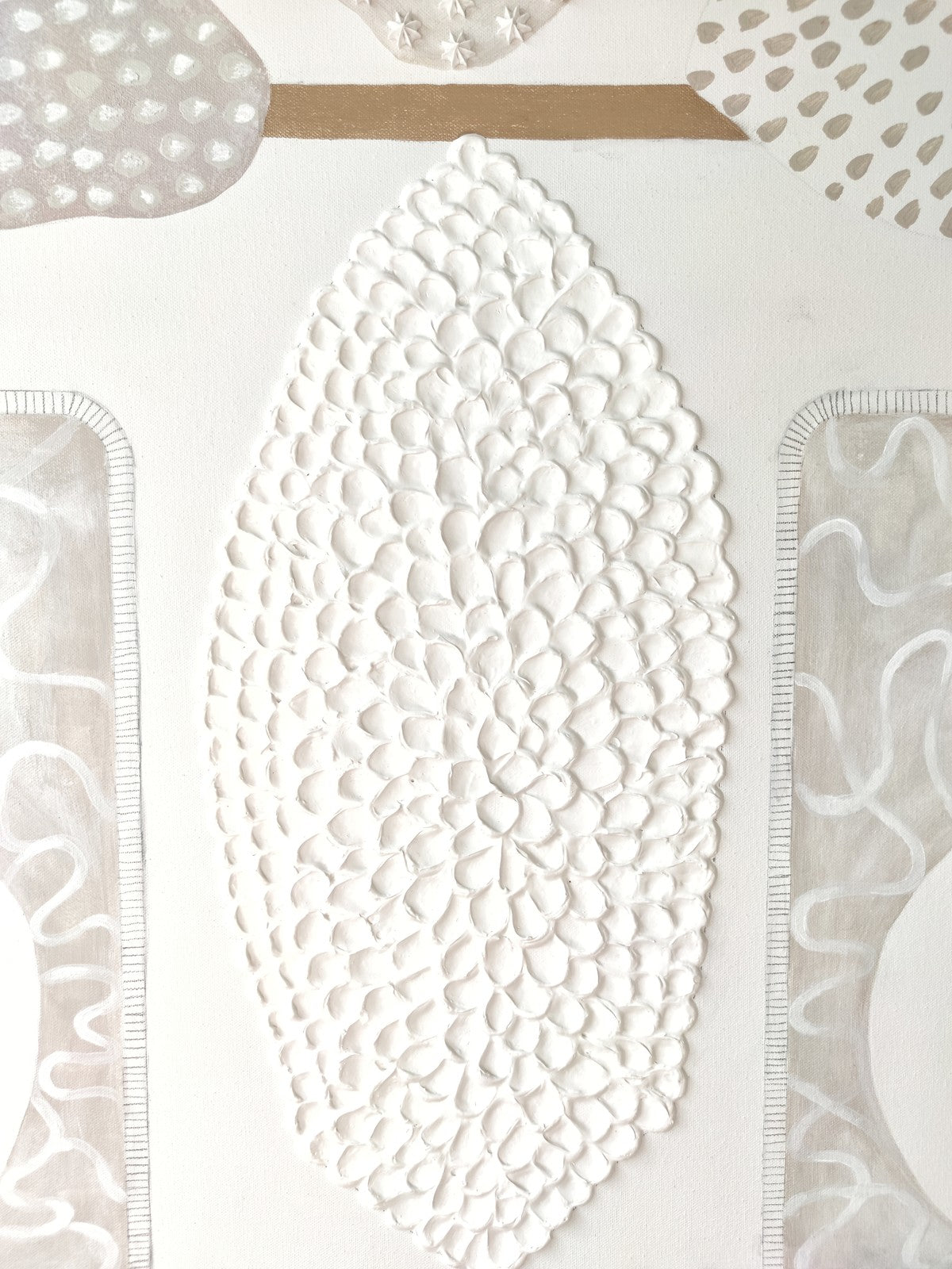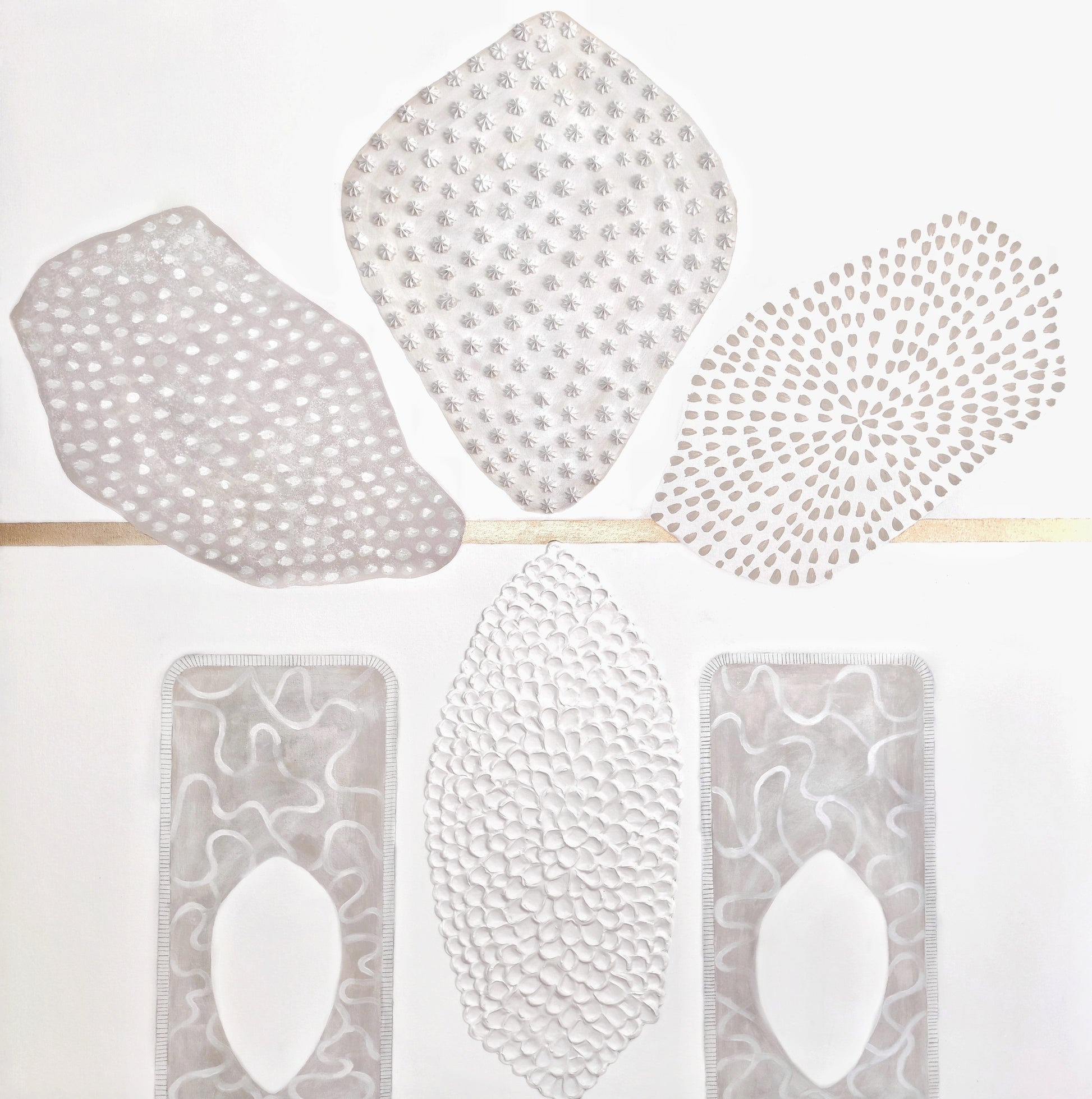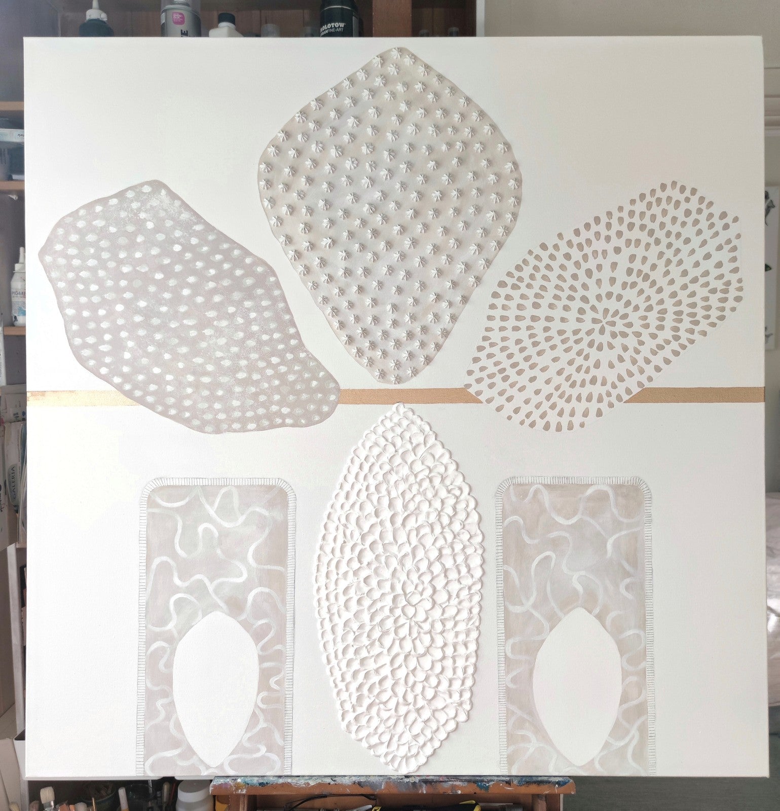 Jag leker mig fram i olika mönster, strukturer och medium och guldfärg