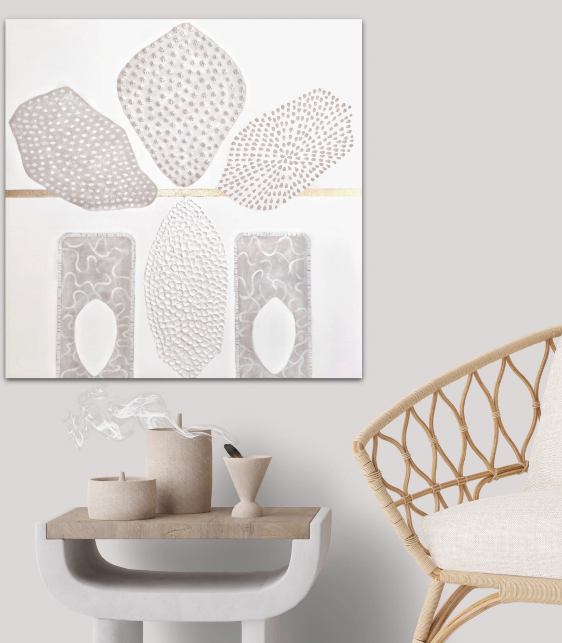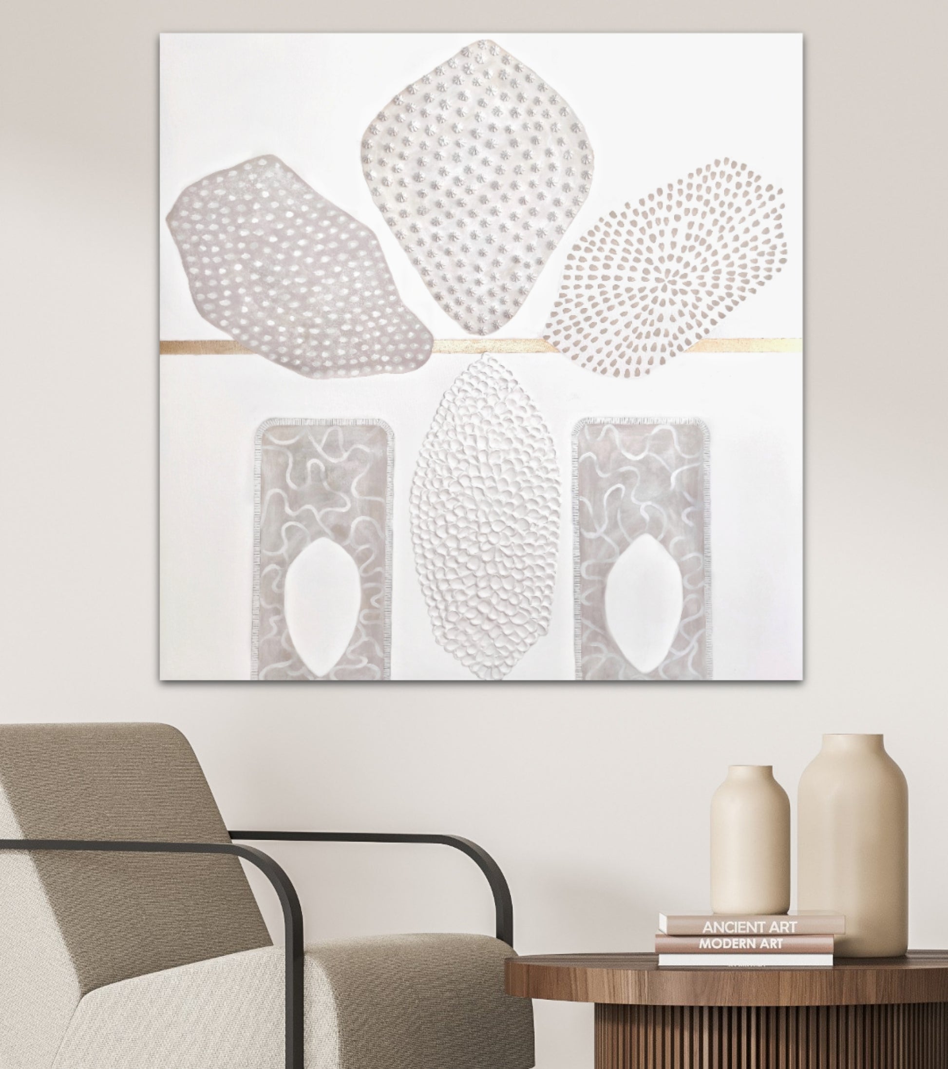 SIA har jordnära ljusa nyanser på en vit bakgrund , vackra strukturer och en linje i guldfärg